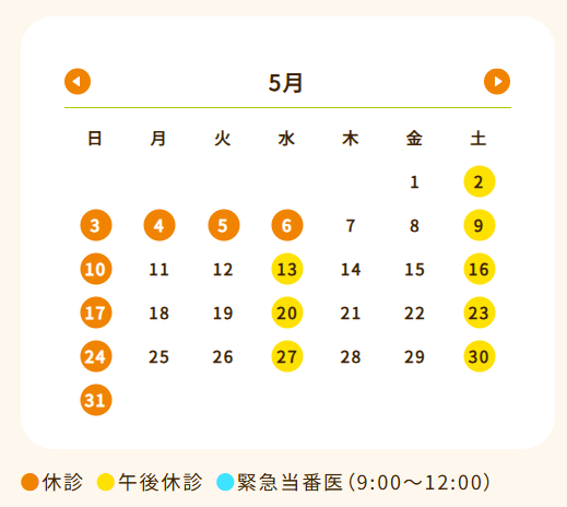 いつも当院をご利用いただき、ありがとうございます。今年のゴールデンウイークは、下記の日程で休診させていただきます。