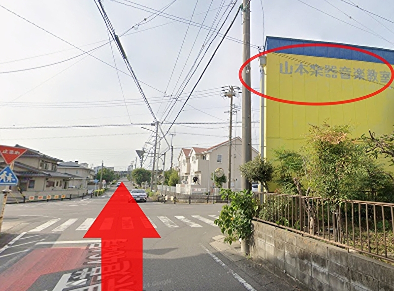 「山本楽器音楽教室」さんが右手に見えてきます。いくつか交差点が出てきますが、全て直進します。
