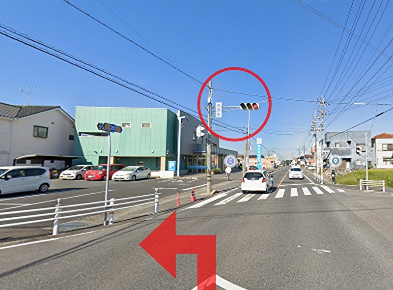 県道261号を進み、美原町の交差点に出ます。信号を左折します。